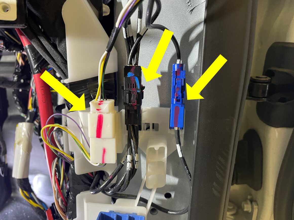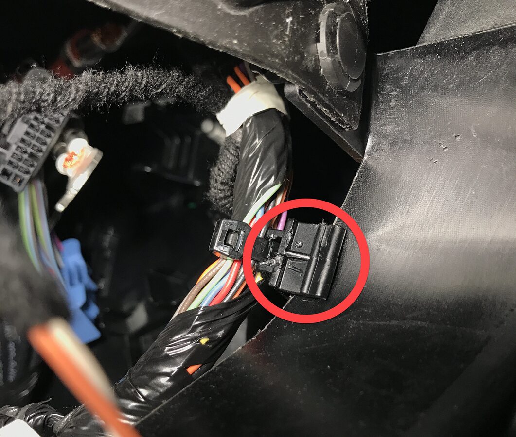 - 连接右侧 A 柱下部区域线束夹处的连接器。