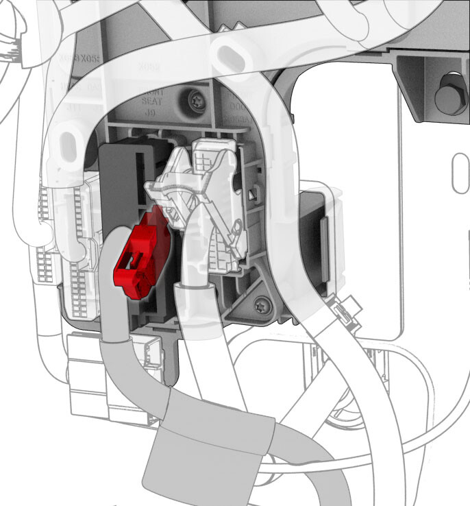 - 将 J9 副驾位座椅电气连接器连接到右侧车身控制器模块。