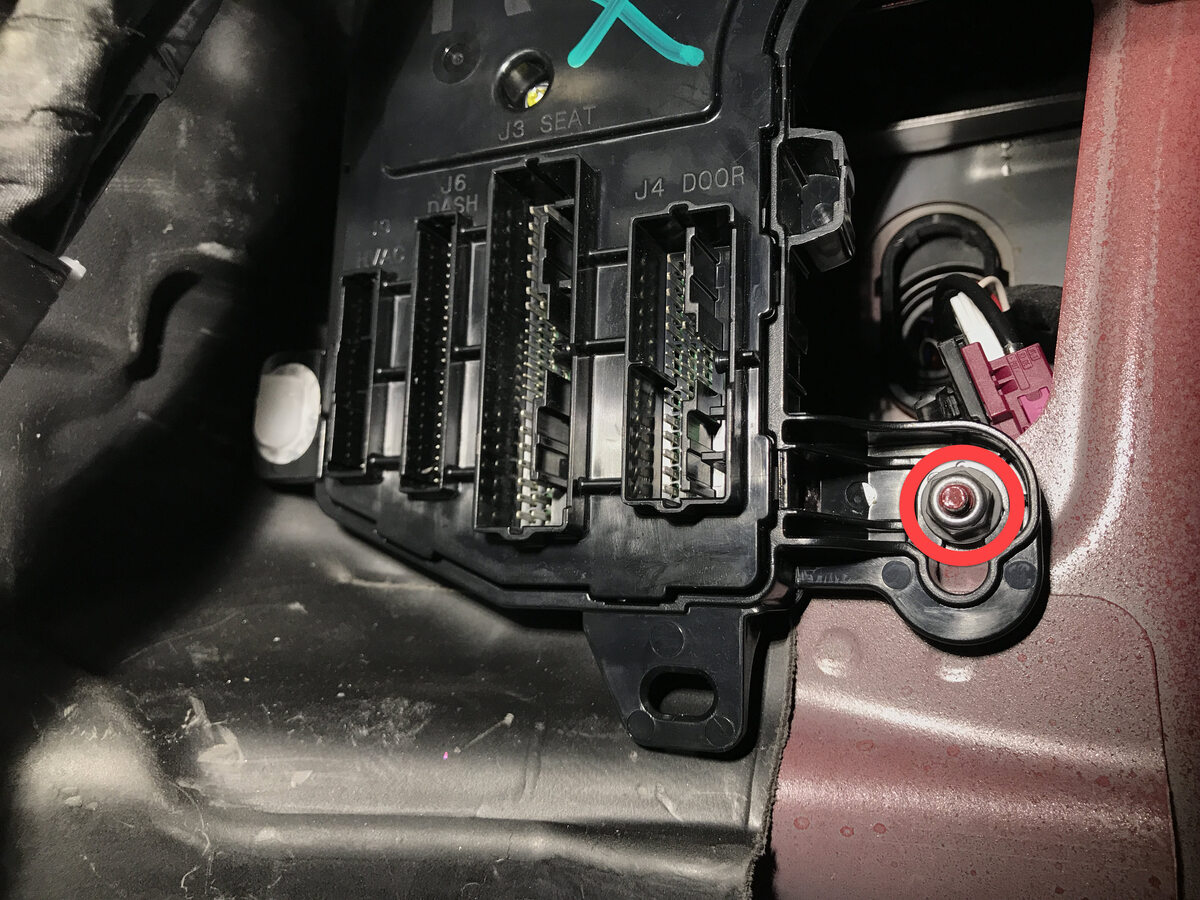 拆下并弃用将 RH 车身控制器模块固定到车辆的耐落螺母。