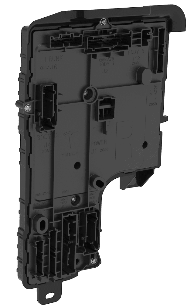 - 松开连接器锁,然后将 J1 电源电气连接器从右侧车身控制器模块上断开。