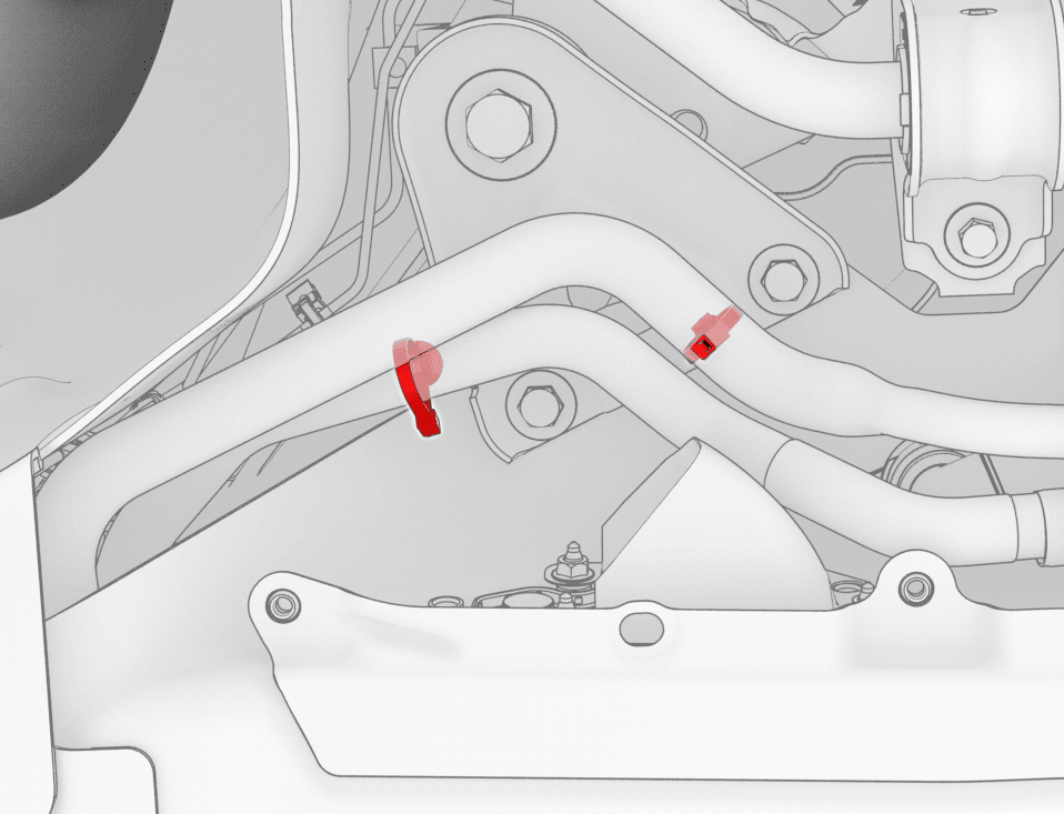 - 松开将冷却液软管固定到左侧剪力板的卡子(2 个)。