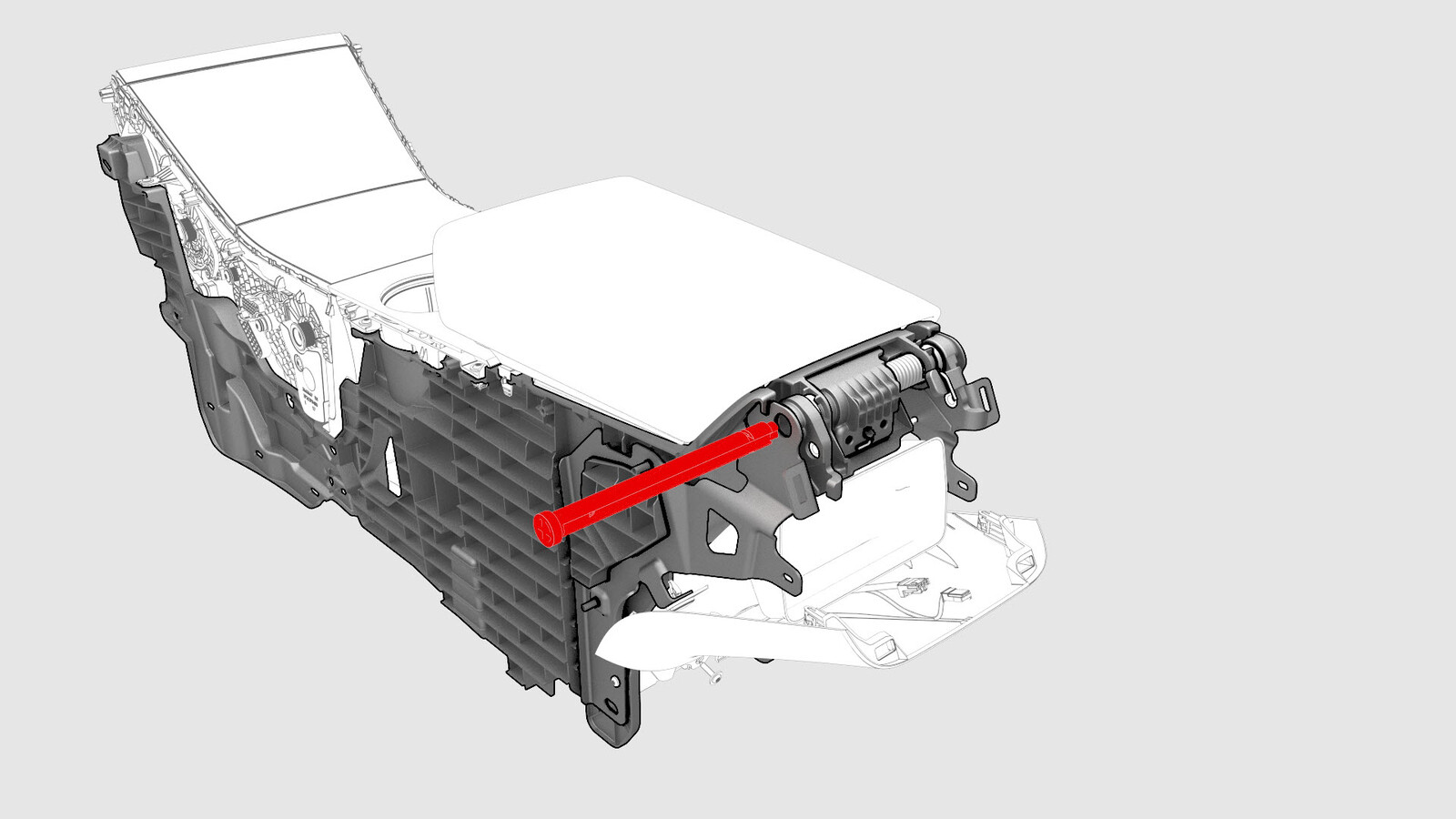 拧下将扶手铰链销帽固定到中控台的螺钉,然后取下销帽。