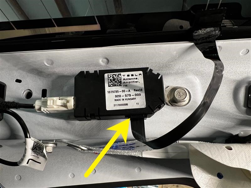 - 将背光灯电气连接器连接到 FM 天线放大器。