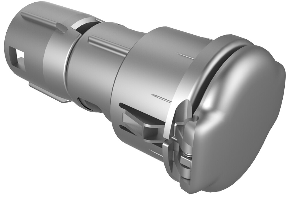 - 松开弹簧端罩上的小锁片,将电源插座滑入端罩内,以便插座侧面的开口于端罩大锁片对齐。