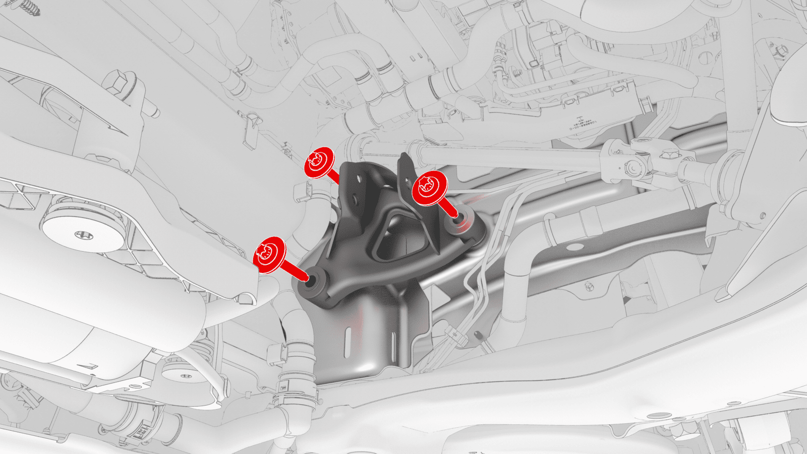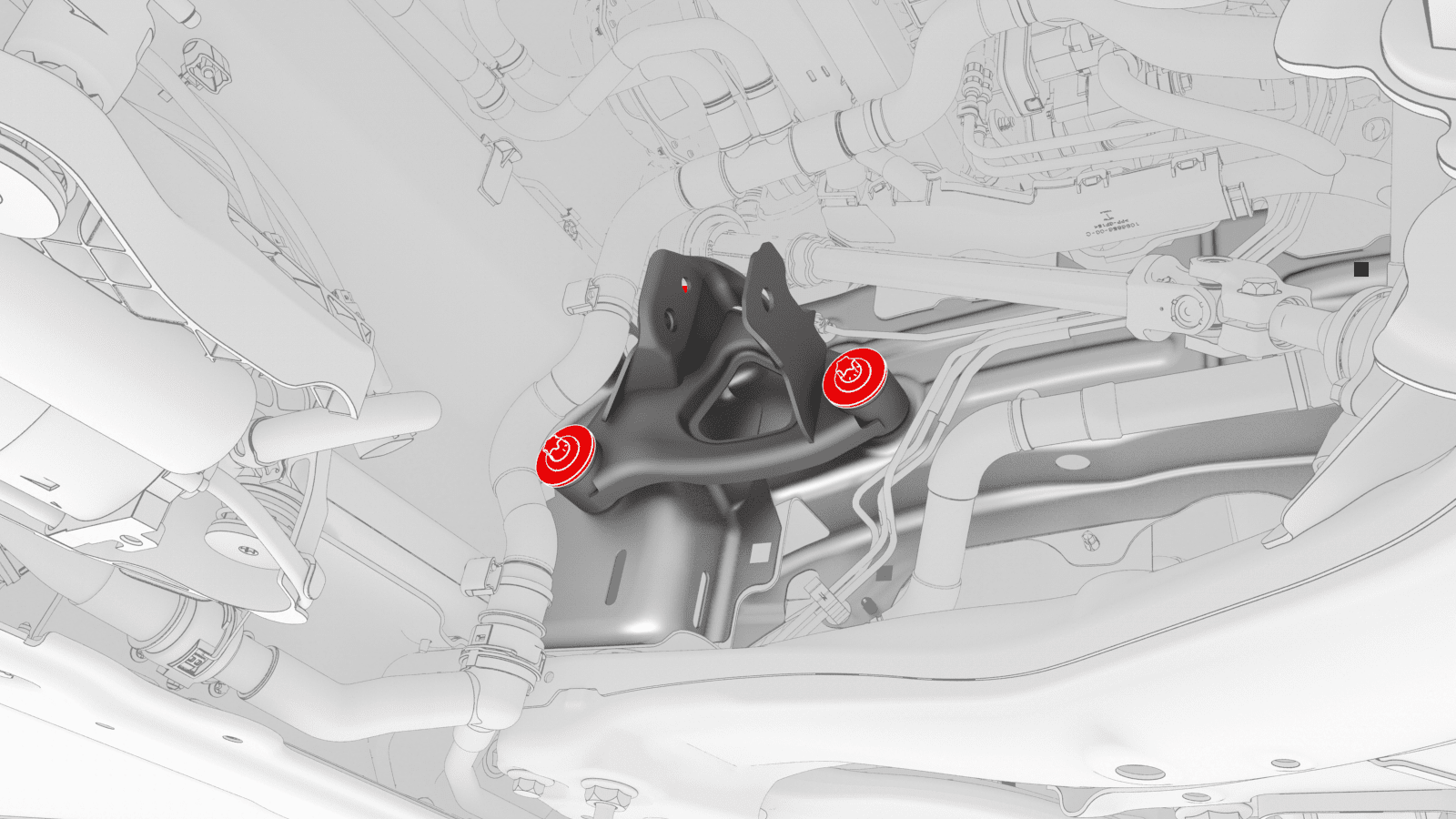 紧固将左前电机支座隔离器固定到车身的新螺栓(3 个)。