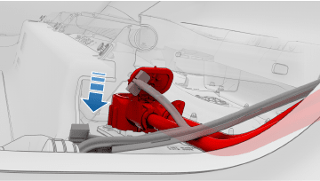 - 松开将电气线束固定到第二排座垫边缘支架的夹子。