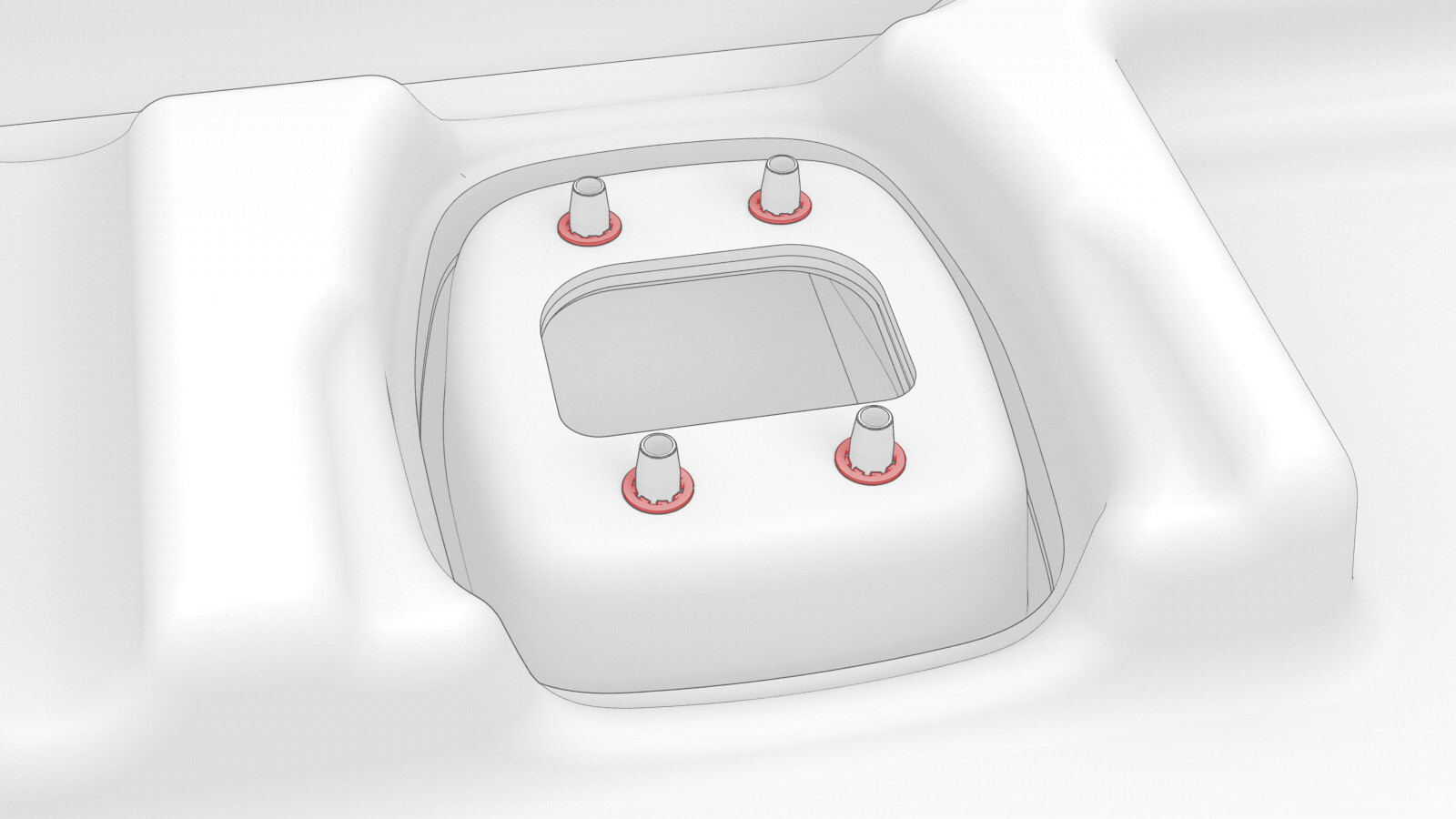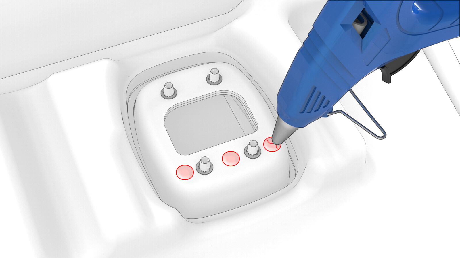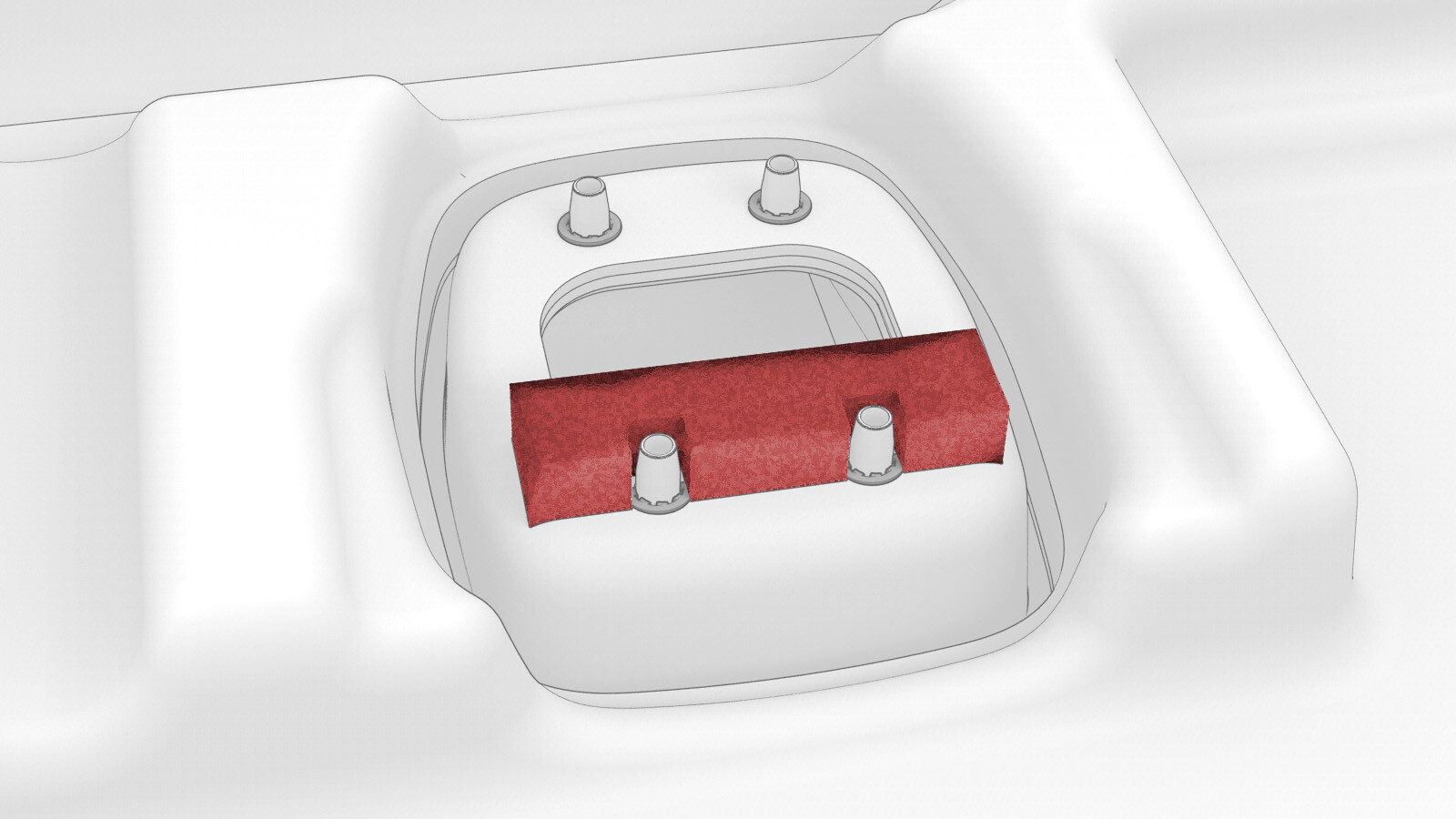 - 如果系带固定翻转门有泡沫挡块,使用胶枪将胶水涂到所示区域,然后安装泡沫挡块。确保胶水完全干燥后再继续操作。