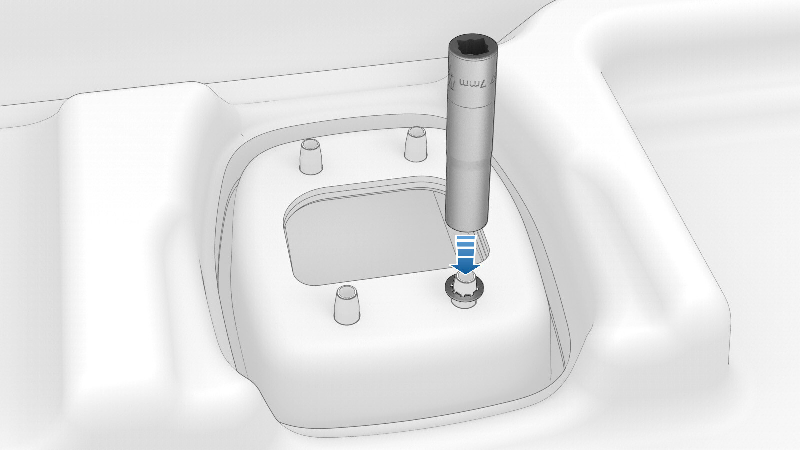 提示: 使用 7 mm 套筒向下推并将固定夹固定住。