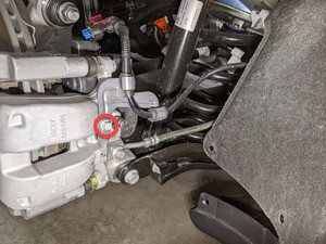 | Bolt that attaches the LH rear EPB harness bracket to the LH rear caliper |