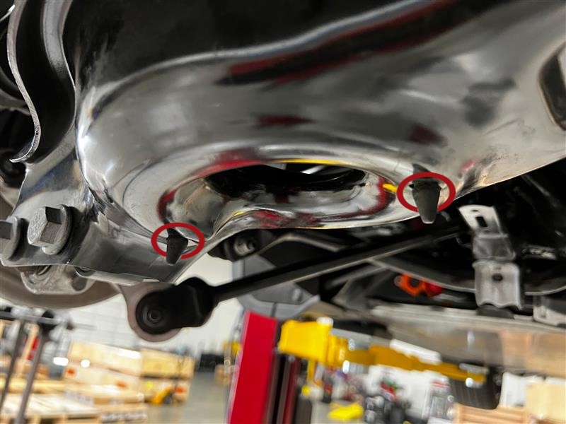 - 拆下将左后下部尾连杆固定到后副框架的螺栓和螺母,然后从副框架上拆下连杆。