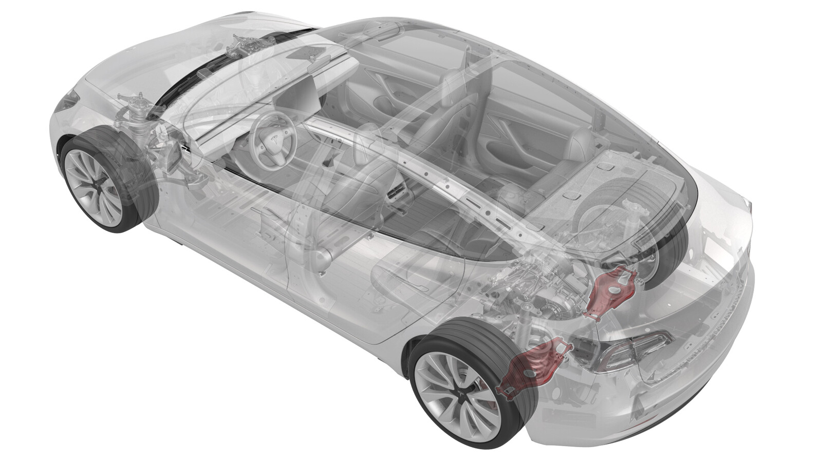 - 将左后下部尾连杆安装到后副框架上,然后安装并用手拧紧将连杆固定到副框架的螺栓和螺母。
