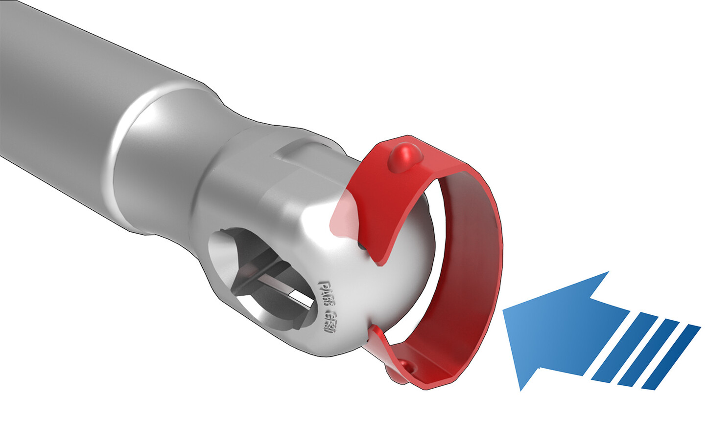 将夹具的末端与支撑杆上的凹槽对齐,然后将夹具推入支撑杆,直至夹具完全进入槽内。