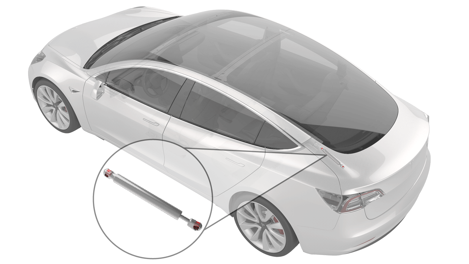 图 1. 图示为后备箱盖一侧的支撑杆,车身一侧与之类似。