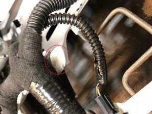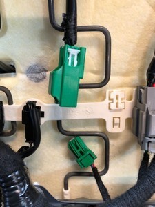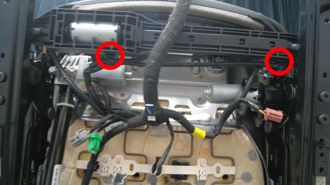 注旧线束直接夹在座椅框架上,而新线束则固定在夹到座椅滑轨上的线束导件上。请参阅图片。