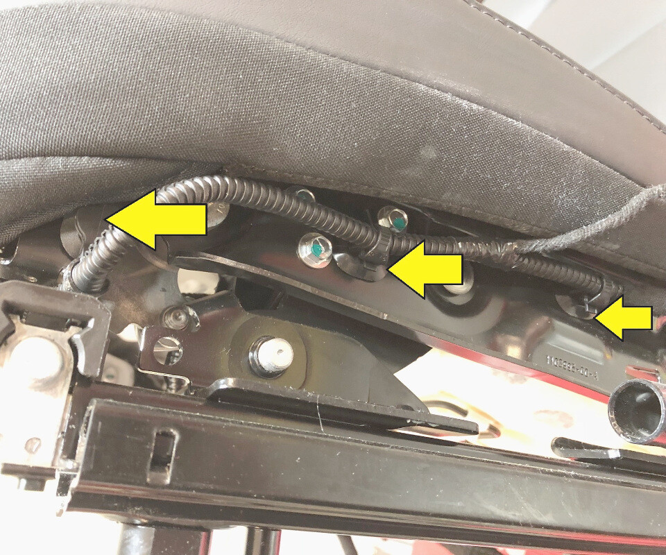 - 将加热垫连接器滑到座椅框架卡子上,以固定连接器。