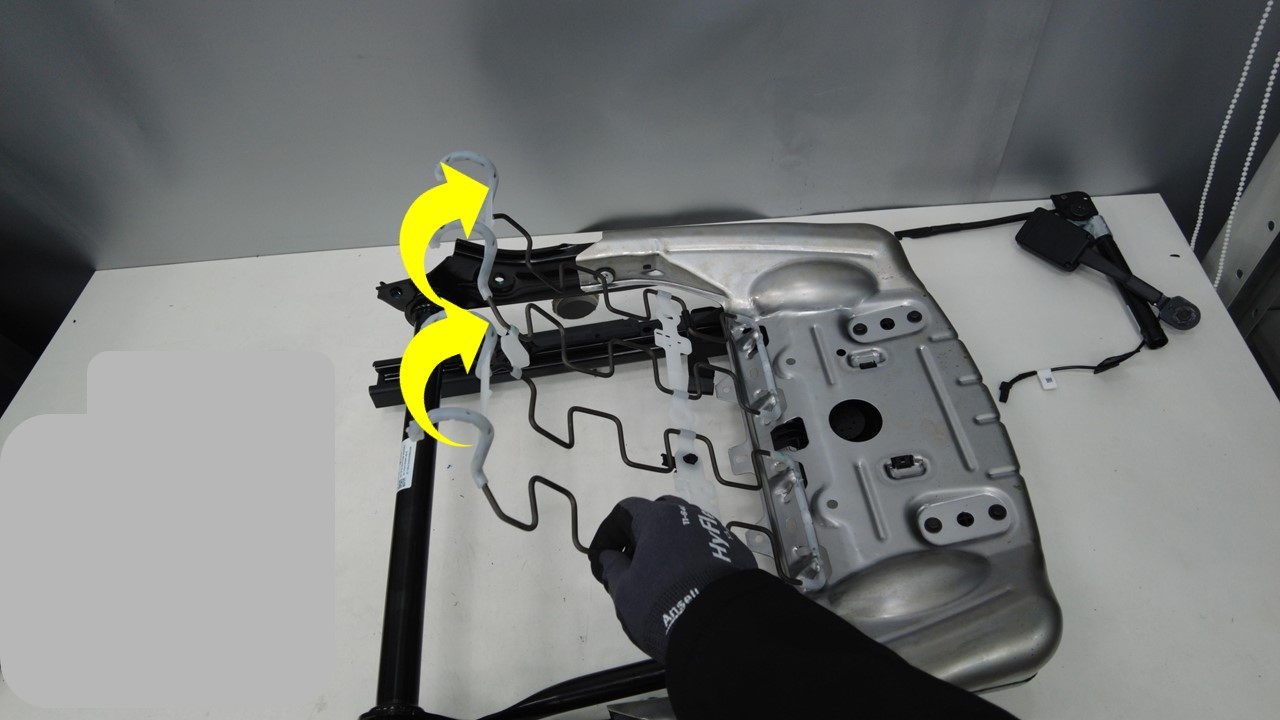 - 拆卸将驾驶位座椅线束固定到座椅框架内侧的夹子(3 个)。