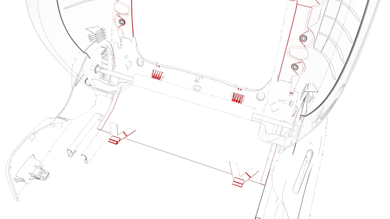 - 将座垫总成放置在座垫框架上,以备安装。将座垫后部插入座椅底部框架,然后将其余部分降下。确保座椅线束穿过座椅框架背面。