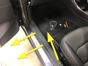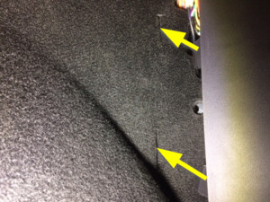 注固定脚踏和泡沫块是地毯的一部分;从卡子上松开座椅线束,以便将地毯进一步向后折叠