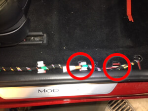 注3 个锁片,1 个以太网连接器,1 个地面照明灯连接器;对于亚太地区的车辆,还必须断开 ODII 连接器