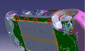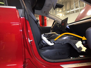 注向下移动前边缘并向上滑动后部以方便定位,将座椅线束安装到夹子中