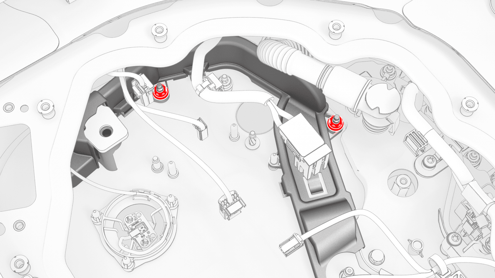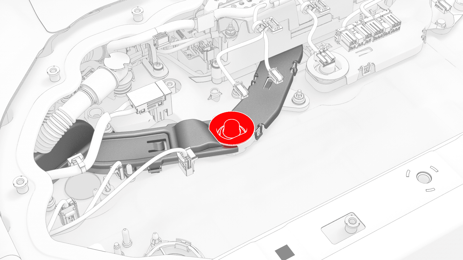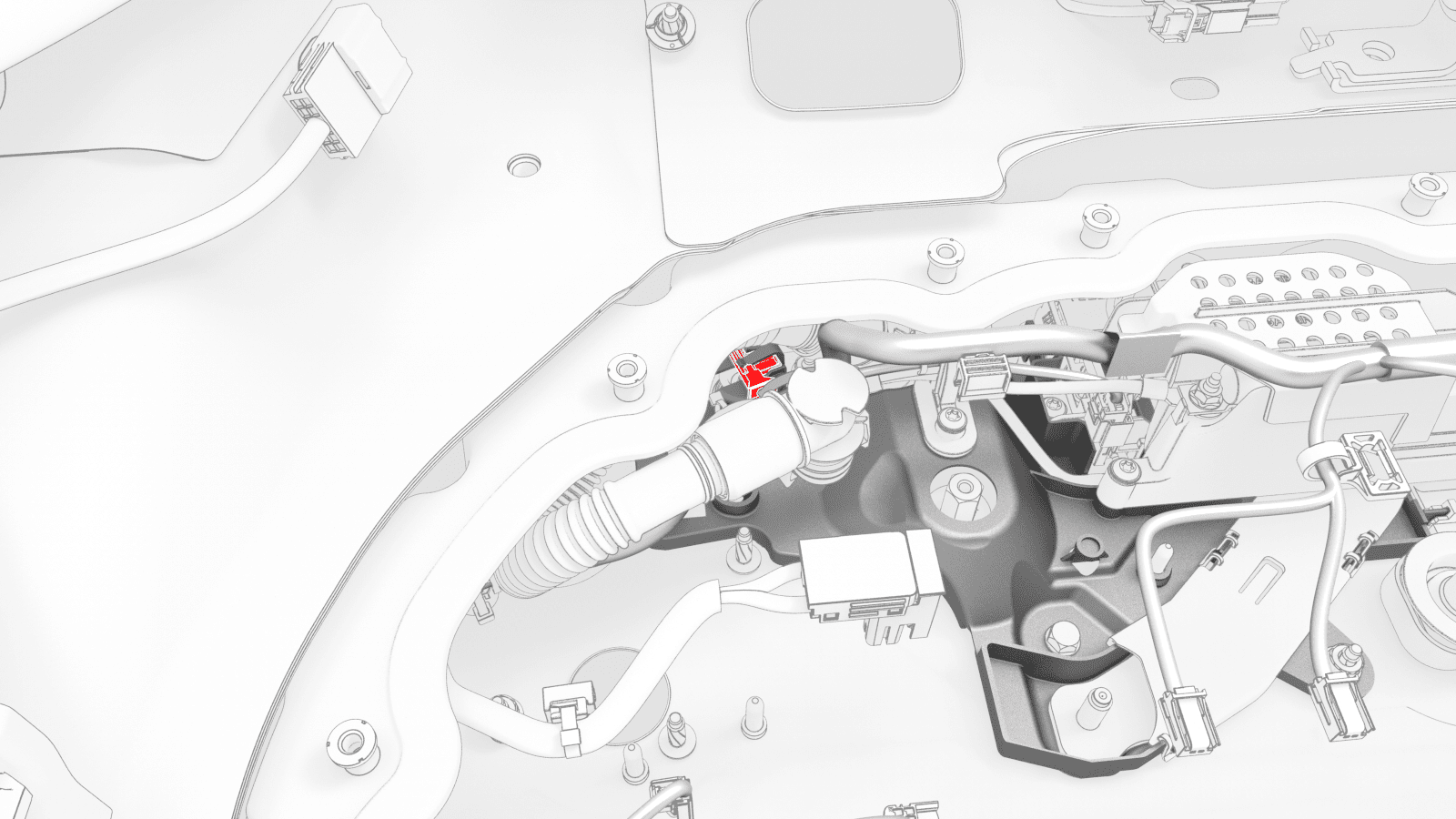 - 如果车辆装配双电机,请将高压电池高压电池仓线束从锁片下方松开,然后断开前驱动单元高压互锁回路的线束。
