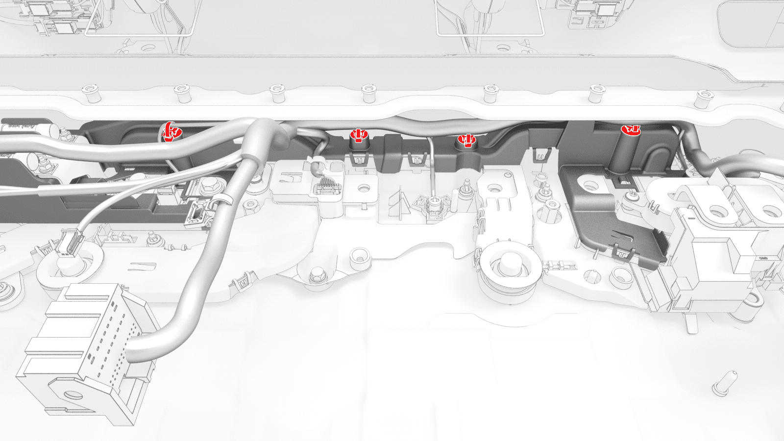- 紧固将高压电池高压电池仓线束固定到母排绝缘体周围的夹子(4 个)。