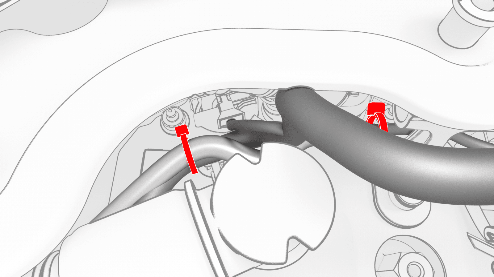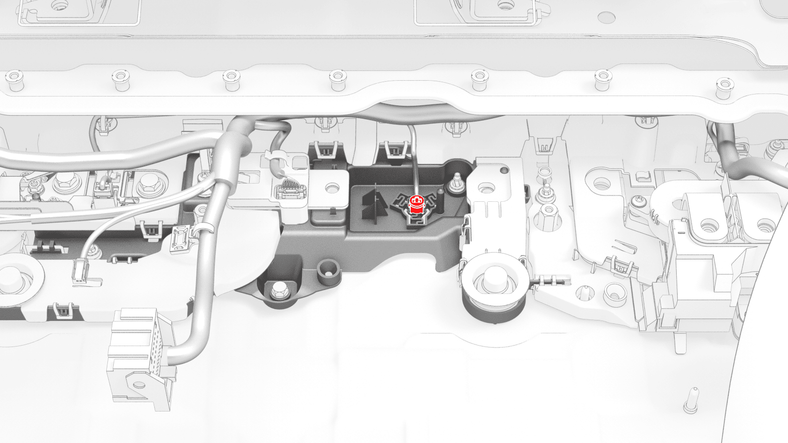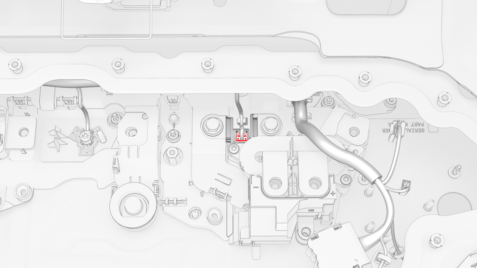 - 在右侧霍尔效应传感器两侧安装新电缆扎带,以便将高压电池高压电池仓线束固定到功率转换系统直流母排高压线束。