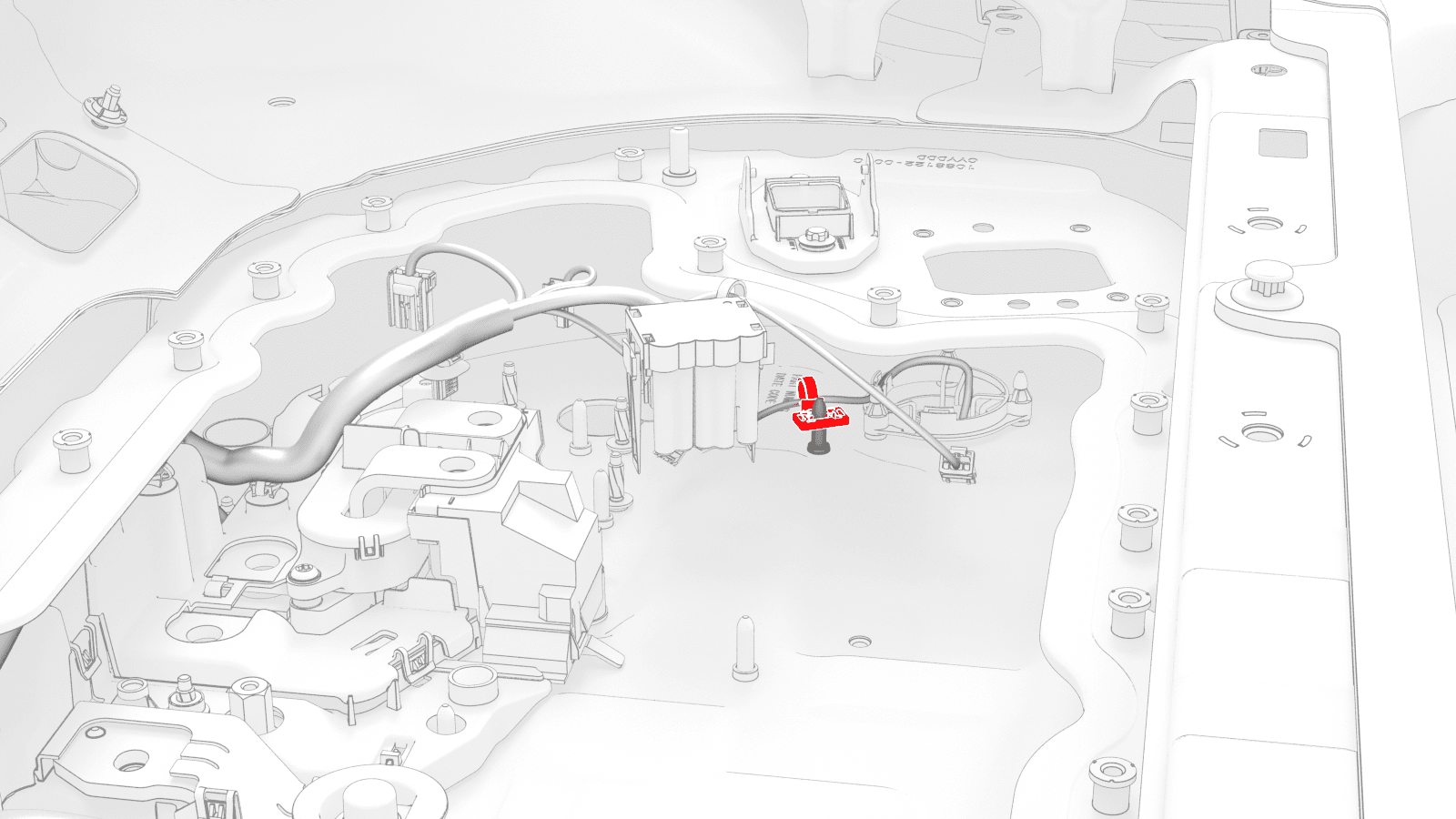- 紧固将高压电池高压电池仓线束固定到左侧 UFO 附近接线柱的夹子。