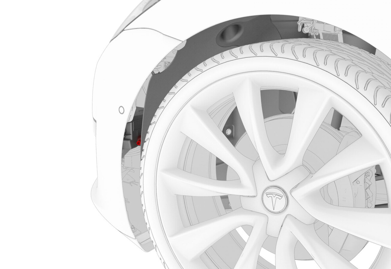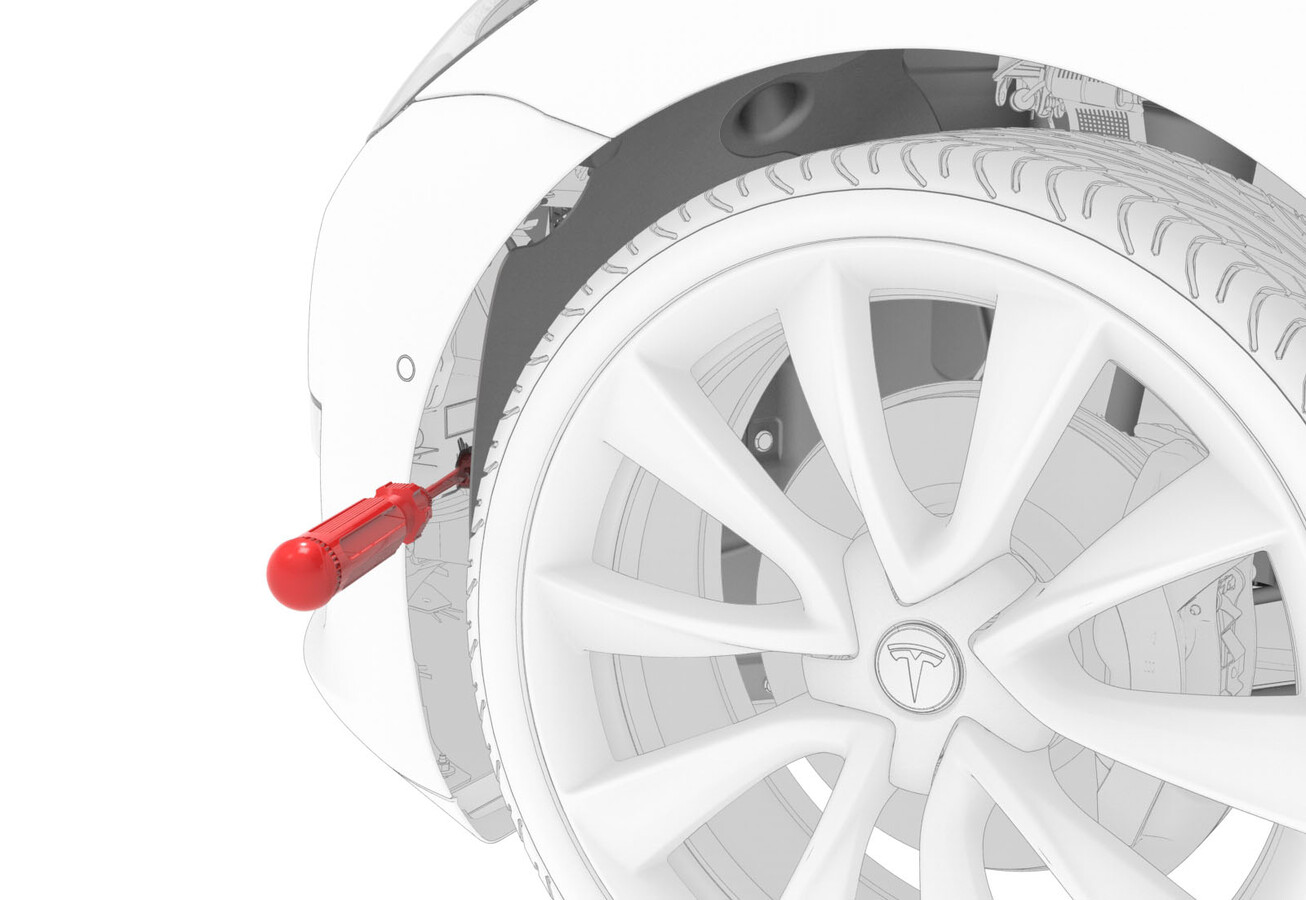 - 重新安装将 LH 前和 RH 前轮拱内衬固定到饰板的卡扣 (x3)。