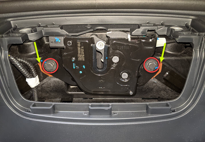注2x bolts,10mm, 8 Nm, Mark latch location for alignment when installing