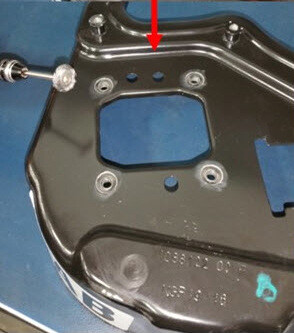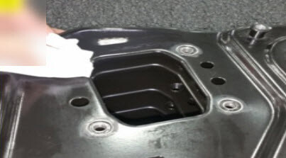 - 在车辆底部粘贴两片丁基粘贴片,覆盖所示位置的螺栓孔,使用硅胶辊浸透粘贴片。