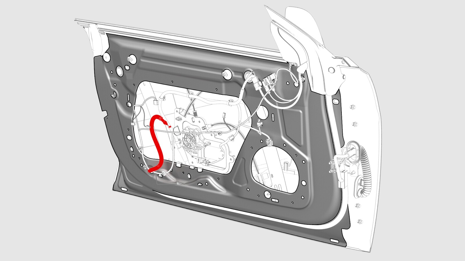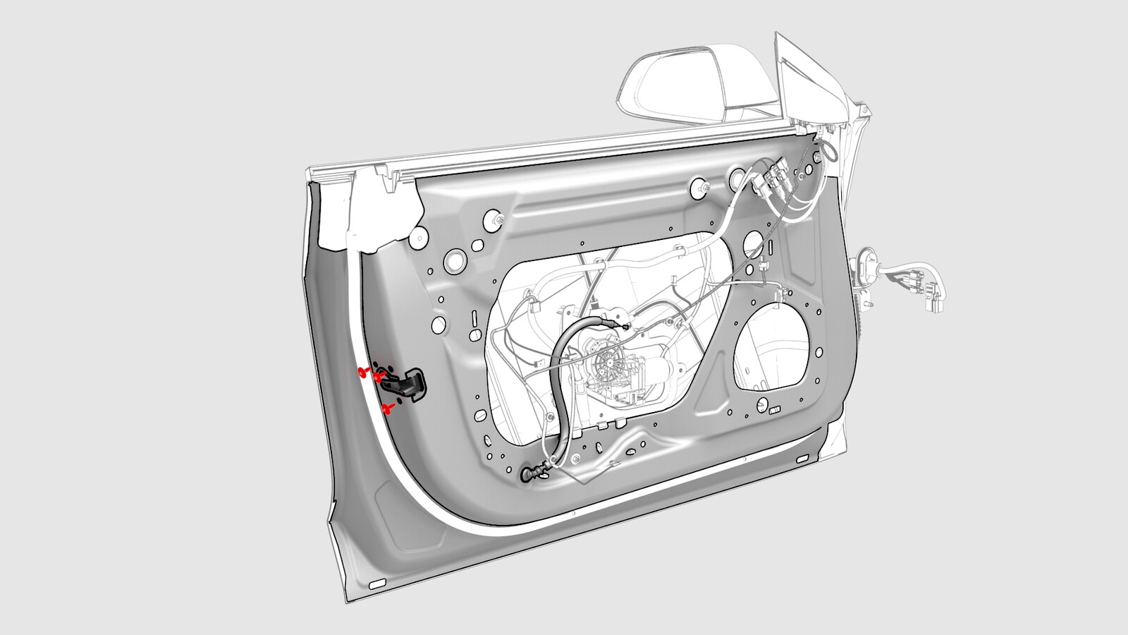 - 从车门闩锁连接器断开电气线束。