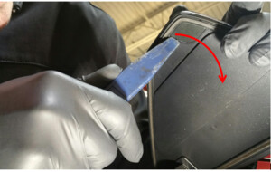 注一只手撑住充电接口盖板,同时使用饰板工具拆下感应式传感器。