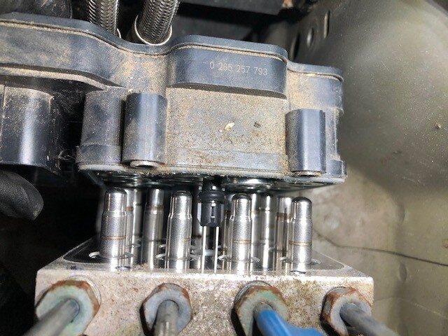 Torque lower right bolt securing hydraulic control unit ECU to hydraulic control unit
