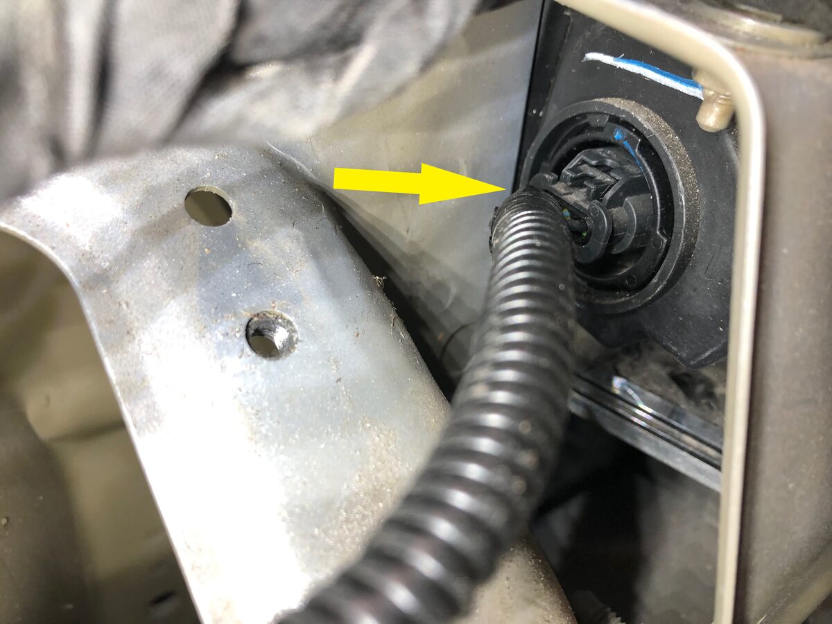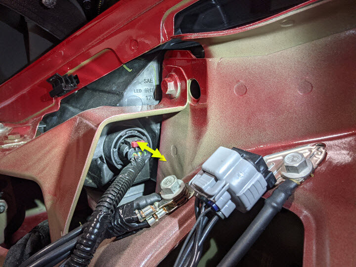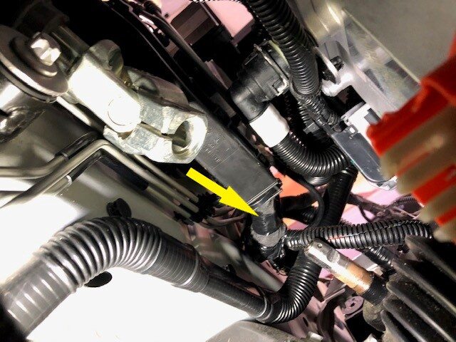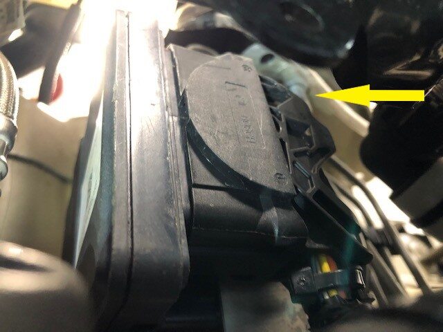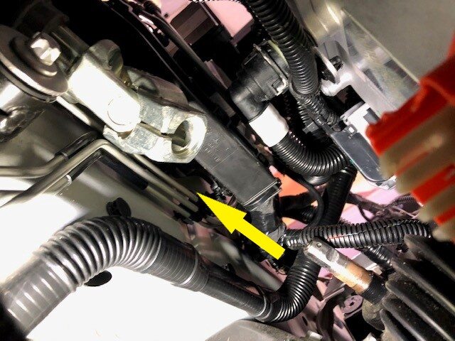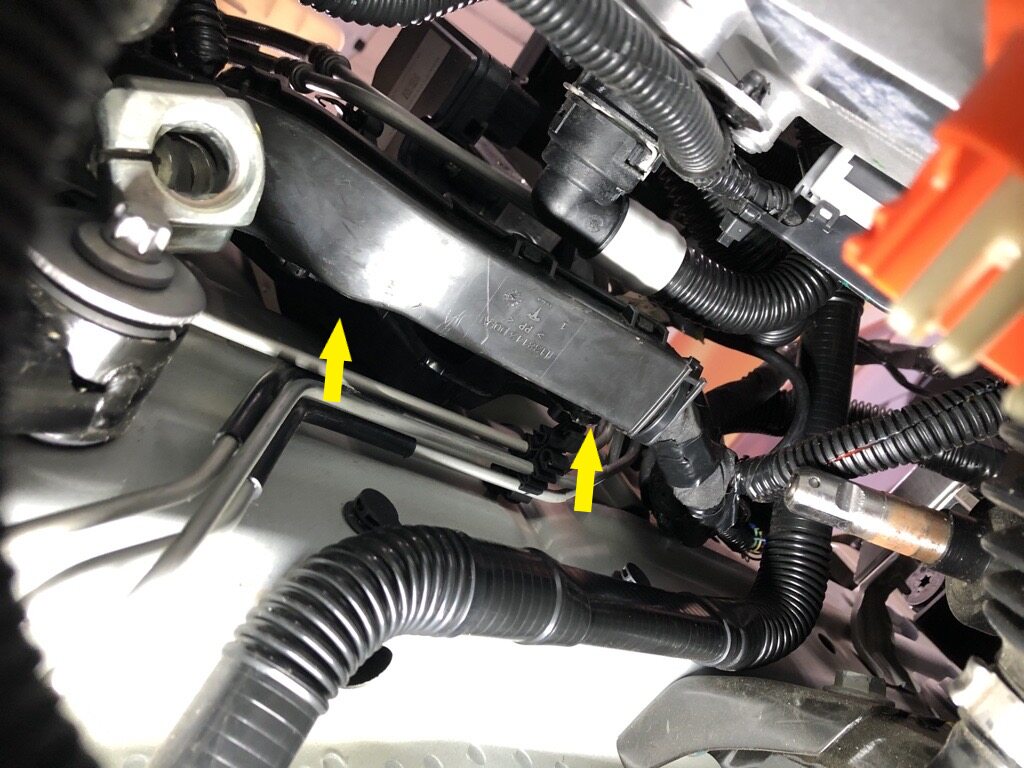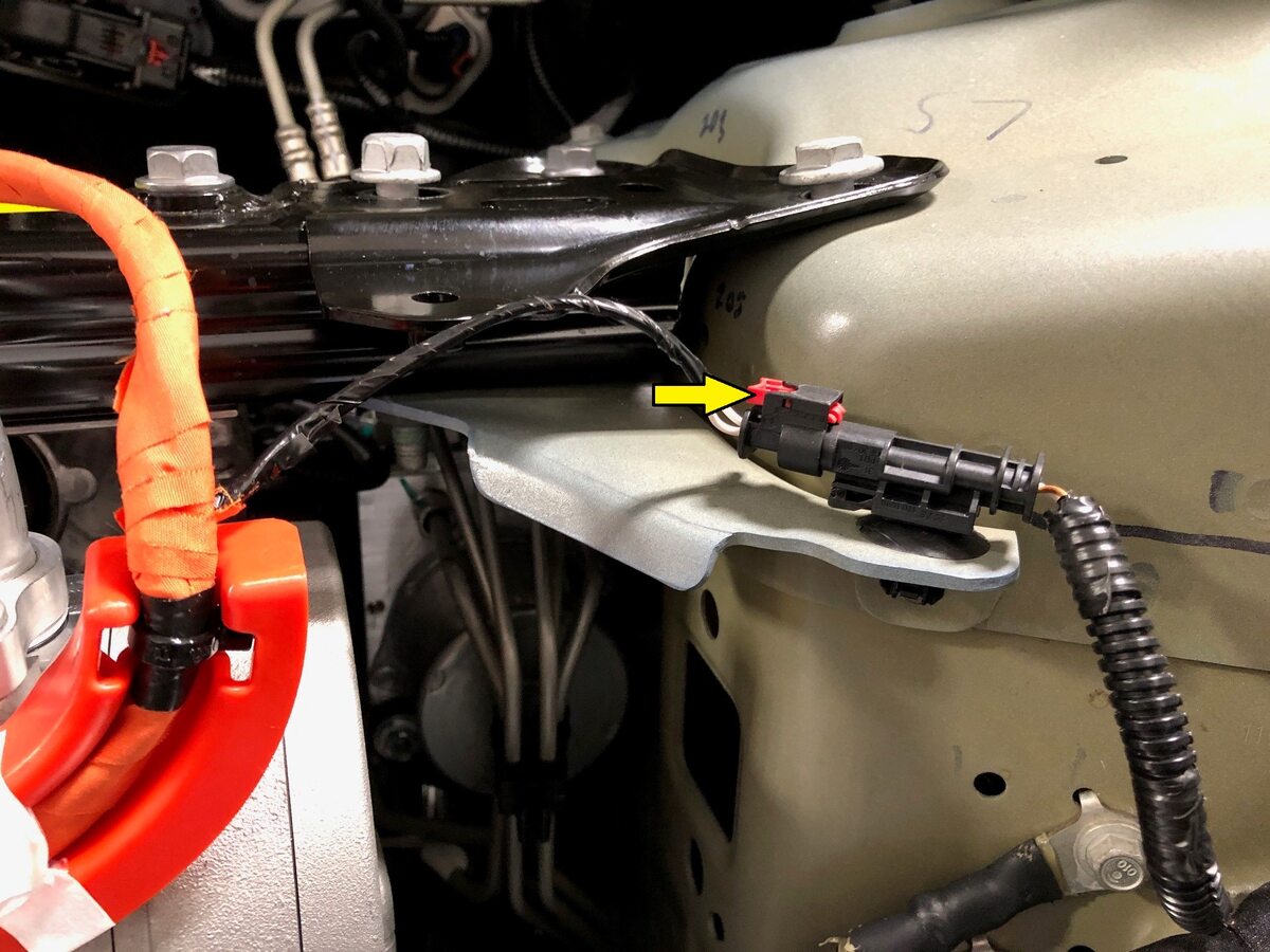 注1x connector, Red locking tab, Release lock from opposite side of bracket then release connector towards front of vehicle, Image zoomed in for clarity