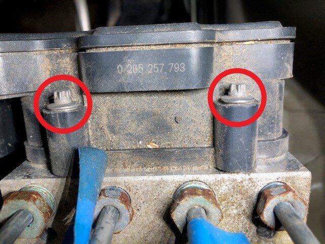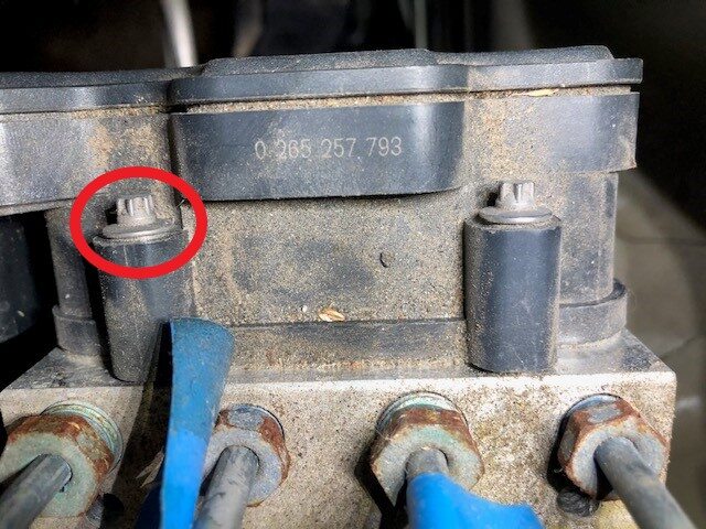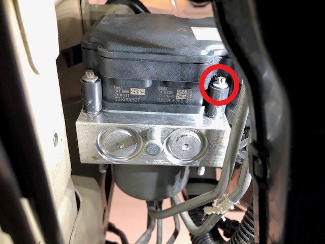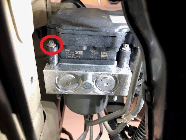 Torque lower left bolt securing hydraulic control unit ECU to hydraulic control unit