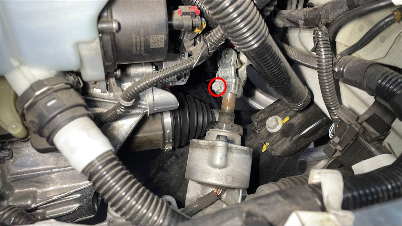 Install bolt securing the intermediate shaft assembly to the steering gear assembly