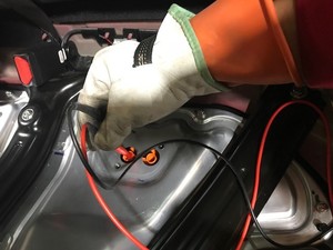 注Check gloves for damage prior to each use, Refer to service document TN-15-92-003 R5, for information on inspecting HV gloves, https://service.tesla.com/docs/ServiceBulletins/External/TN/TN-15-92-003_High_Voltage_Awareness_Care_Points_R5.pdf