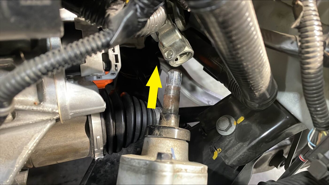 Slide the intermediate shaft assembly downward to install it to the steering gear assembly