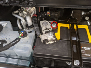 注2x clips, 1x nut, 10mm, 6 Nm, Do not fully remove positive terminal nut