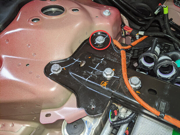 注1x nut, 10mm, 6 Nm, Ensure the vehicle is in park, climate control system is off, and vehicle is not charging before disconnecting 12V