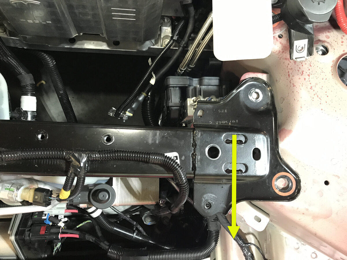 注4x clips, 1x connector, Frunk safety switch, 3x guide tabs, Align 3x tabs then push downward to secure clips