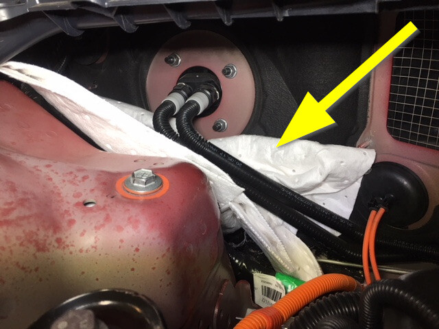 - 在车载电脑冷却液软管连接点下方放置吸收性材料,以收集溢出的冷却液