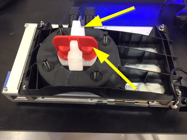 断开车载电脑支座的外侧冷却液软管,然后清除车载电脑中的冷却液