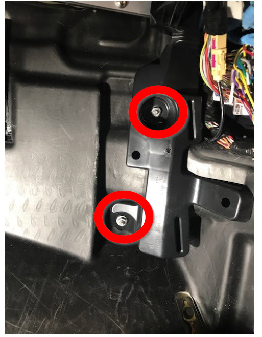 拆卸将右侧地毯固定器支架固定到脚部空间的螺母(2 个),然后从车上拆下支架。