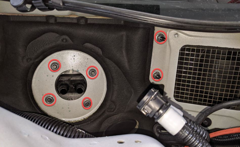 - 拆卸前备箱储物单元。请参阅前备箱储物单元(拆卸和更换)。