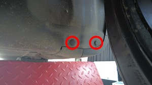 | 将左侧轮拱内衬底部后边缘固定到车身的螺栓 |