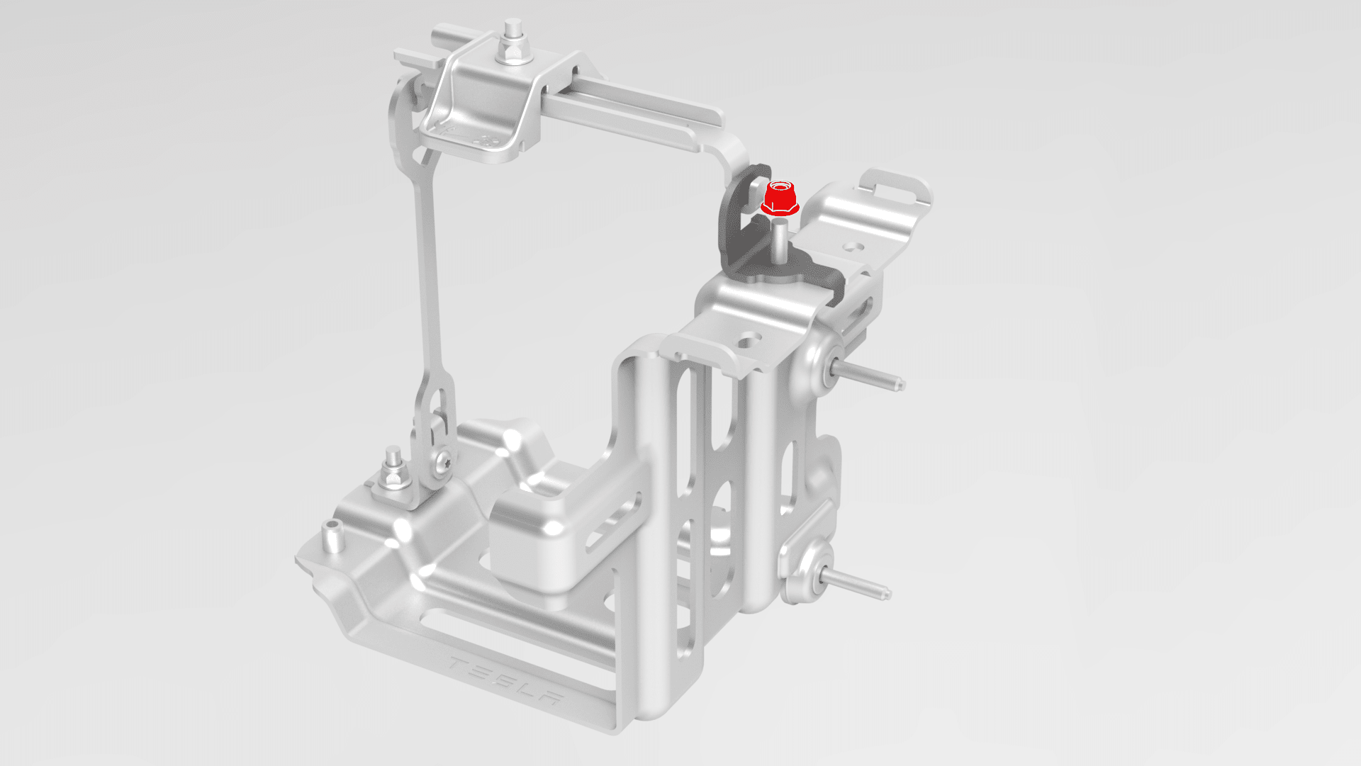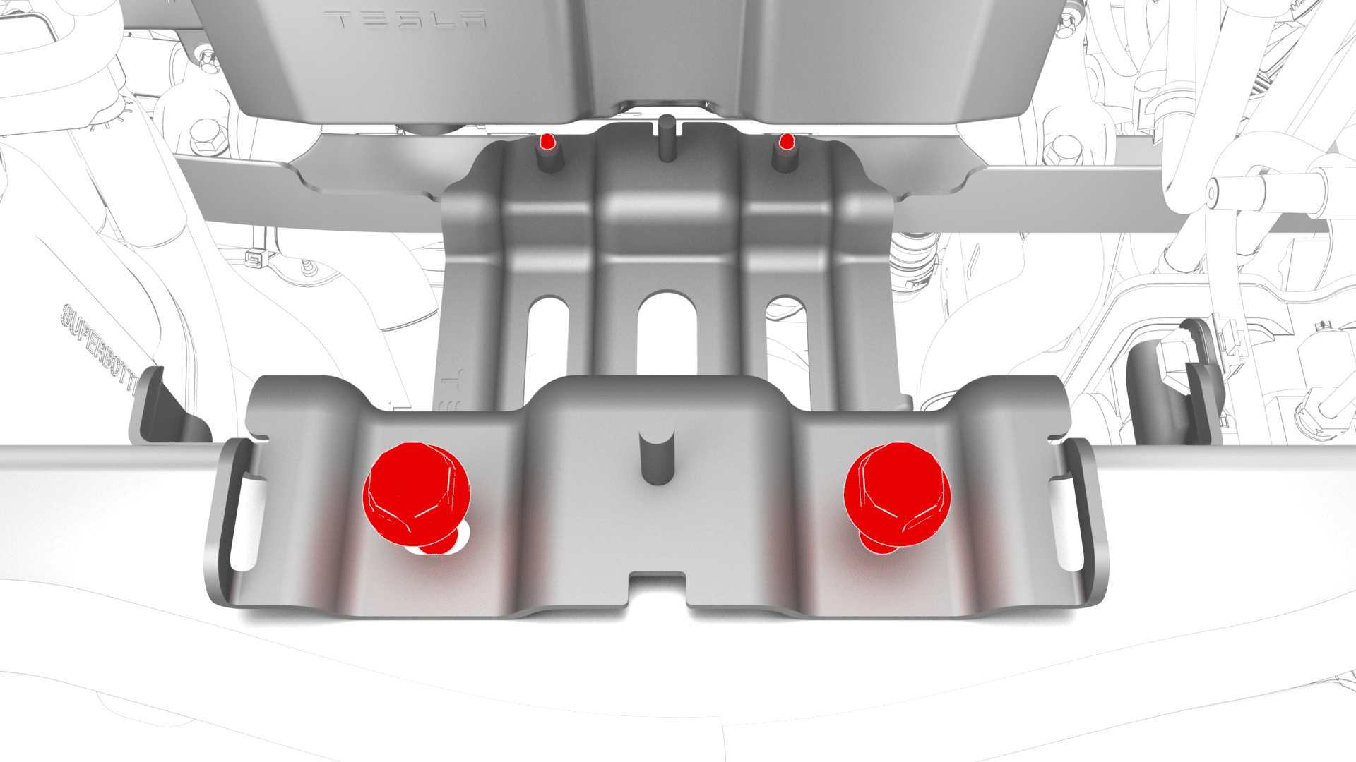 安装将电池支架固定到减震塔支架的上部螺栓 (x2),以及将电池支架固定到电池横梁的下部螺栓 (x2)。