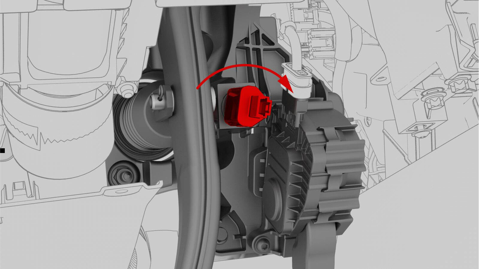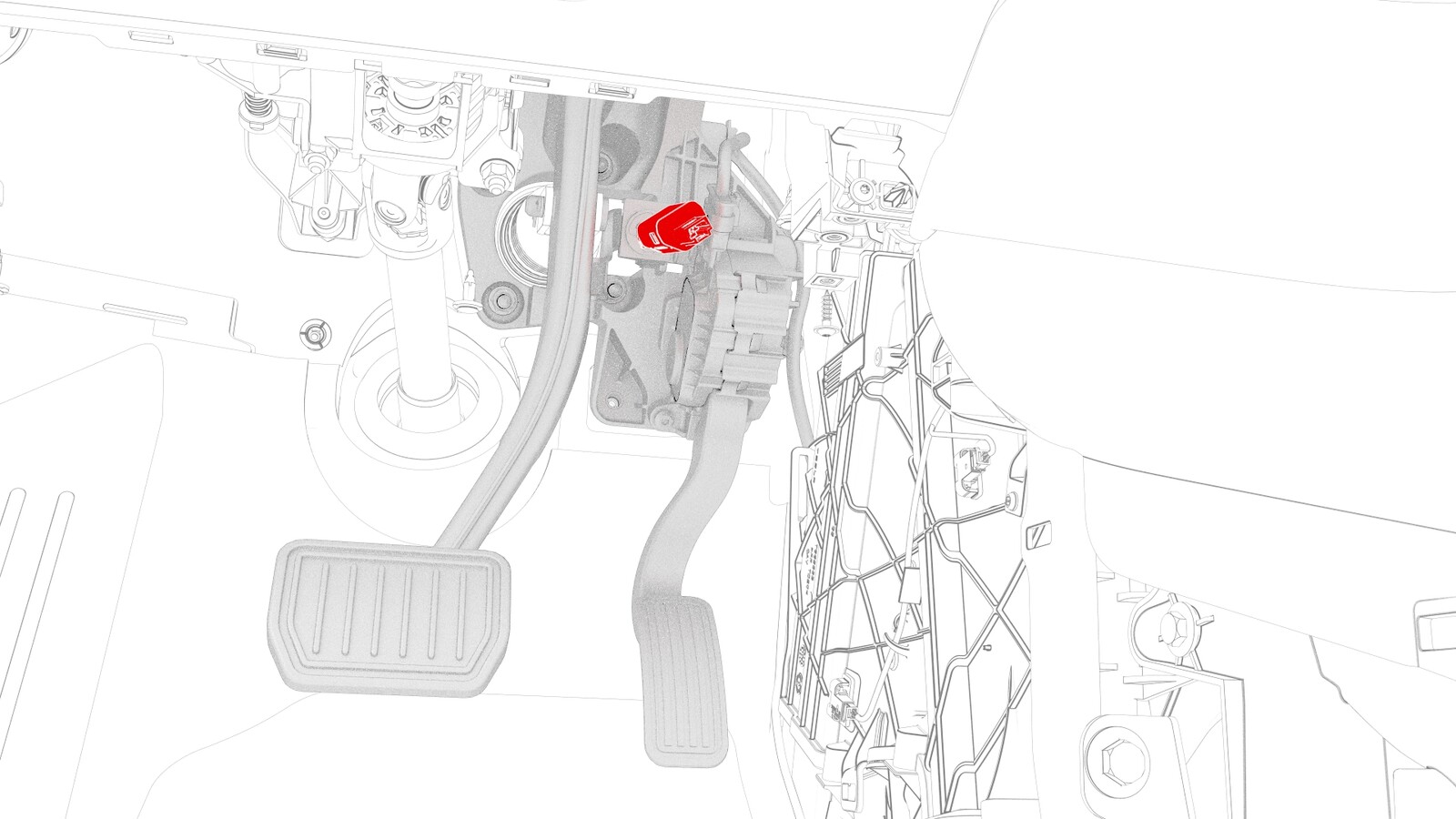 - 将电气线束与制动灯开关连接器相连,然后执行推拉推测试,确保连接紧固。