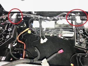 - 将 HVAC 线束紧固到仪表板线束右侧的线束底座上。